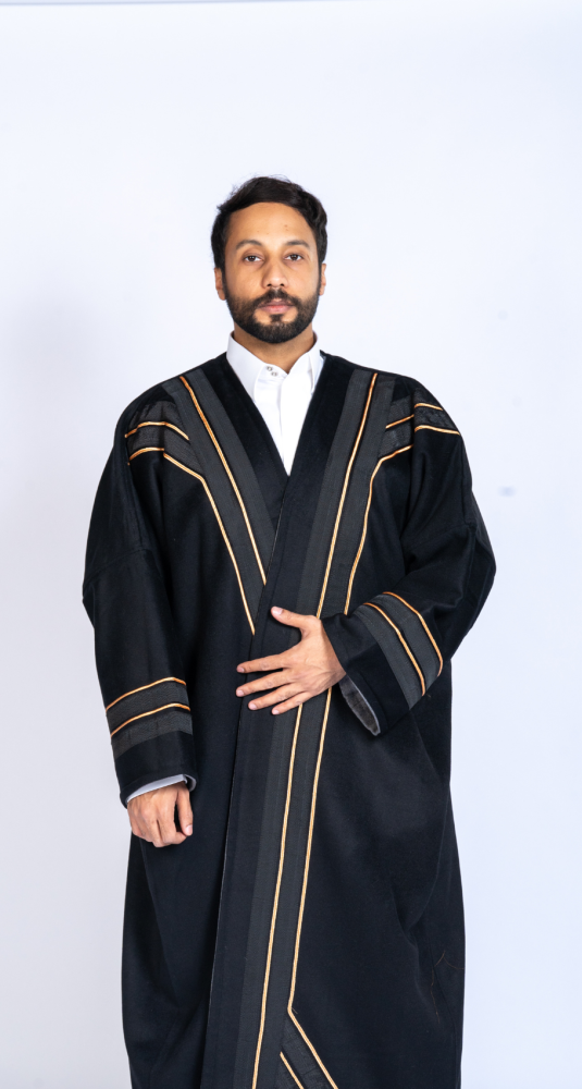 تكتمل أناقة الفروة بتفاصيل راقية من الشرائط الذهبية التي تضيف لمسة من الفخامة والجاذبية.
