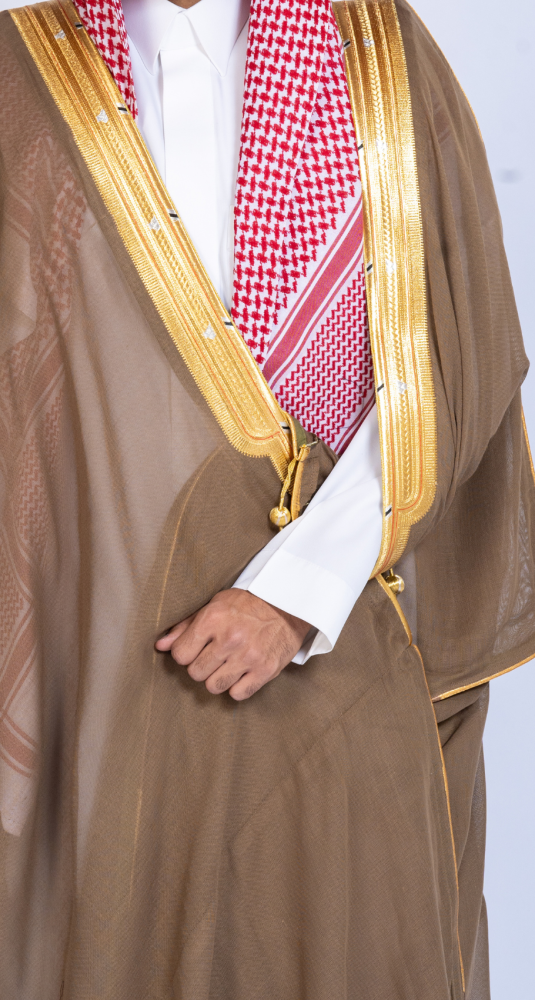 تحفة من الأناقة والرقي، بشت ملكي كموني، رمز للفخامة كما هو الحال الذي يتجلى في هذا البشت الذي صُنِع خصيصًا ليتناسب مع الأجواء الصيفية.