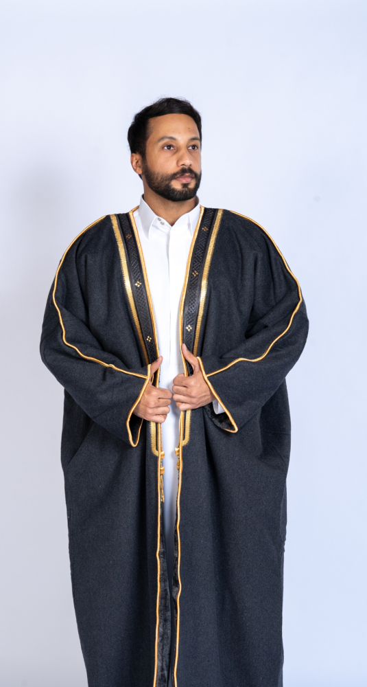 استمتع بالدفء والفخامة مع فروة وقار المصممة بأسلوب يحاكي أناقة البشت، تتميز بتطريز فاخر يغطي كامل الصدر، مع بنود وأطراف مزينة بلمسات ذهبية تضفي عليها طابعاً من الرقي والجمال.
